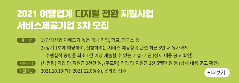 한국관광 데이터랩은 더 나은 관광 빅데이터 서비스를 제공해 드리기 위하여 데이터 활용에 대한 조사를 실시하고 있습니다.